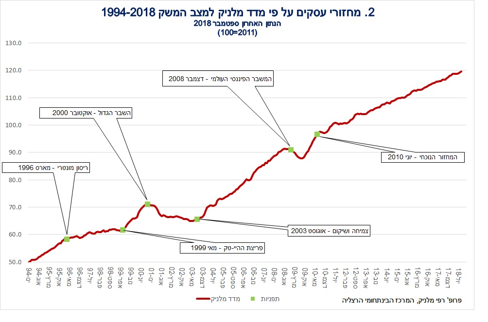 מדד מלניק למצב המשק עלה ב-0.3 אחוז בחודש ספטמבר 2018. המגזר העסקי ממשיך לצמוח. הפדיון בענפי המסחר והשירותים, המשקף את הביקושים המקומיים ובעיקר את הצריכה הפרטית, מצביע על יציבות תוך תנודות, ללא מגמת עלייה, זאת למרות עלייתו בחודש האחרון. מדד הייצור התעשייתי, המשקף את צד ההיצע של המגזר העסקי, עלה בחדות בחודש האחרון, אך מוקדם לקבוע שהתעשייה התגברה על הקשיים בפניהם ניצב הענף. מדד היבוא, המשקף בעיקר יבוא תשומות לייצור המקומי, ממשיך להצביע על ייתכנות לגידול עתידי בפעילות המשקית. מספר משרות השכירים במגזר העסקי חזר לעלות על רקע חוסן בשוק העבודה.
