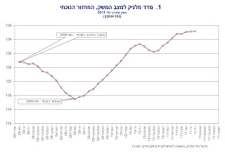 מדד מלניק למצב המשק עלה ב-0.1 אחוזים בחודש יולי 2011. שיעור צמיחת המשק נבלם. מדד חודש יולי ועדכון המדד של החודשים האחרונים – בעקבות נתונים חדשים שפורסמו ע”י הלמ”ס – ממצביעים על בלימת קצב התרחבות הפעילות הכלכלית במשק. על פי הפדיון בענפי המסחר והשירותים מסתמנת ירידה בשיעור ההתרחבות של הביקושים המקומיים ובעיקר של הצריכה הפרטית; אולם הביקושים עדיין ברמה גבוהה. לעומת זאת, במהלך המחצית הראשונה של 2011 לא נרשם גידול בייצור התעשייתי, ובחודש האחרון חלה בו ירידה. התפתחות זו מצביעה ככל הנראה על ירידה של הביקושים ליצוא מחו”ל עקב בלימת הפעילות בעולם התעשייתי.